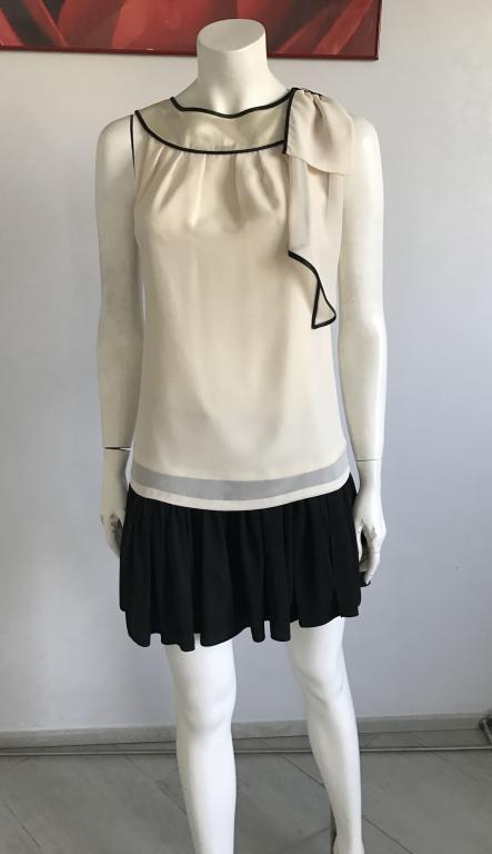 ЭЛЕГАНТГАЯ БЛУЗА ЦВЕТА СЛОНОВЬНЙ КОСТИ С ЧЁРНОЙ ОТДЕЛКЛЙ