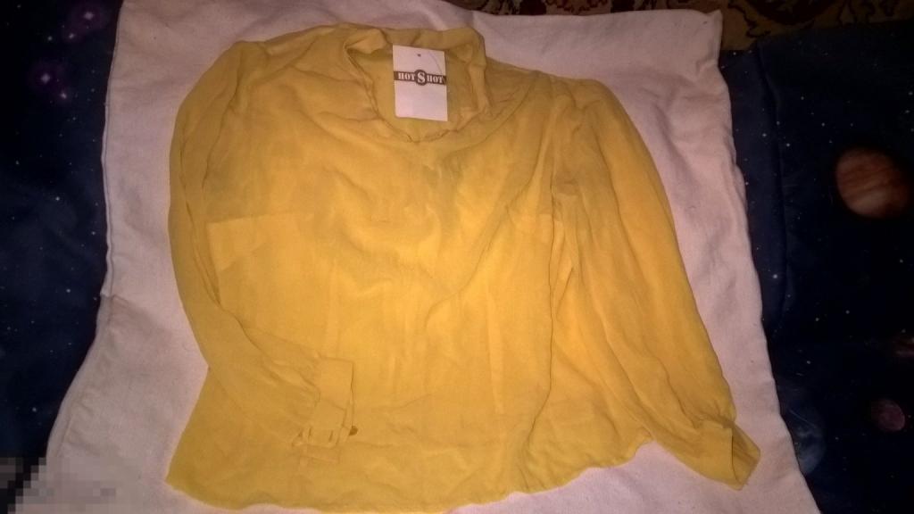 новая стильная блузка натуральный 100% шелк . Легкая и комфортная. Крепдешин красивого желтого цвета. Кожа прекрасно в ней дышит. Размер 46-48