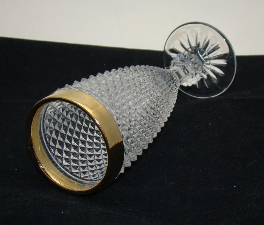 Стекло, металлическое кольцо. Высота 18 см, диаметр сверху 6 см, объём 150 мл.