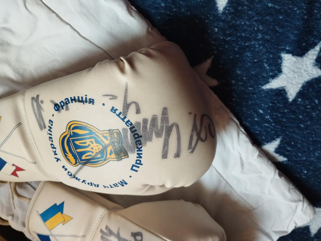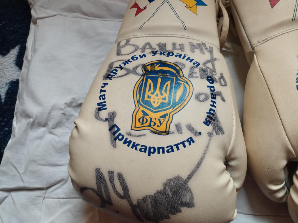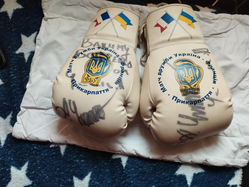 Боксерские перчатки 10 унций Федерации Бокса Украины.С автографом Александра Усика.