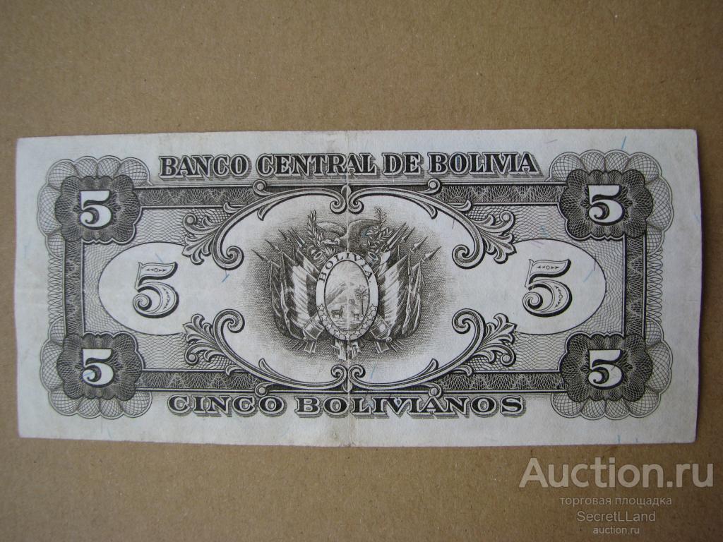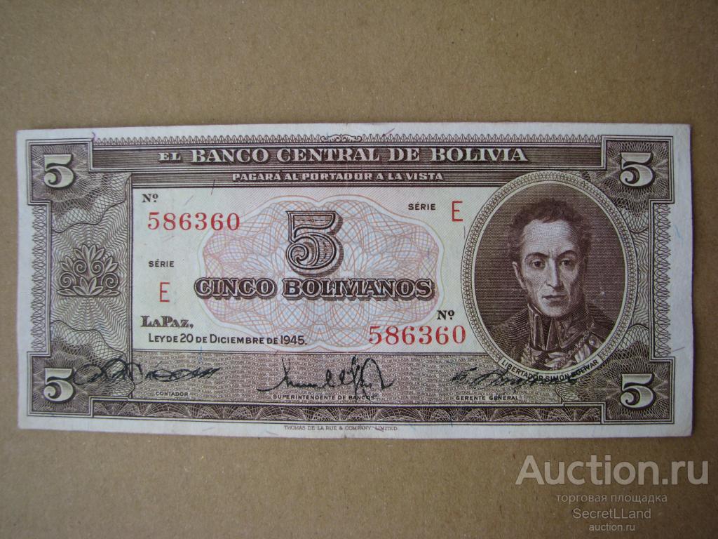 Боливия 5 боливиано 1945 год. Симон Боливар. Состояние на фото.