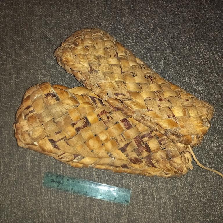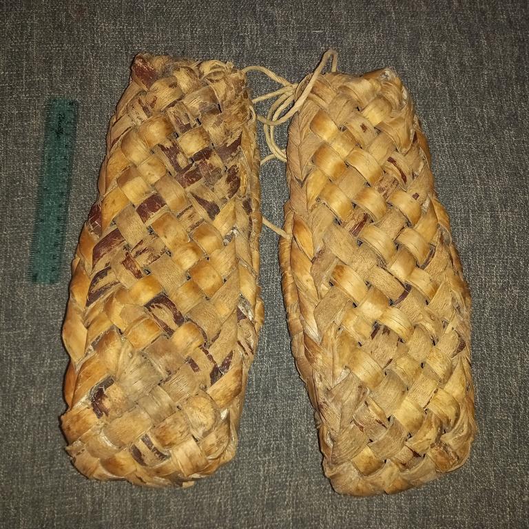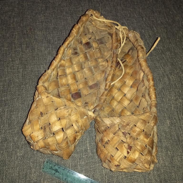Большие старинные лыковые лапти. Длина 32 см. Первая треть ХХ в.