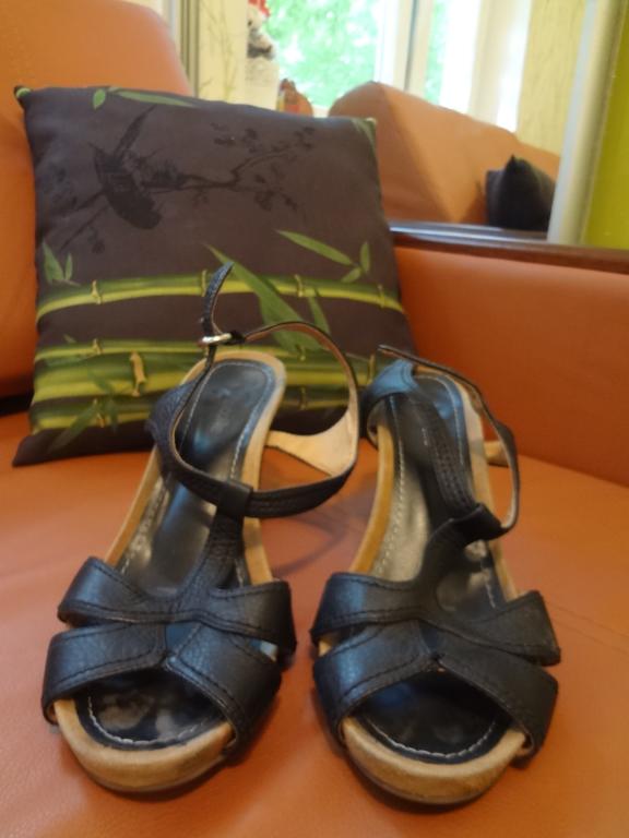 Очень удобные босоножки на каблуке. Не натирают, если соответствуют размеру ноги. Материал: кожа + отделка из замши. Есть небольшой недостаток: на одном ремешке недостает регулирующей пряжки.