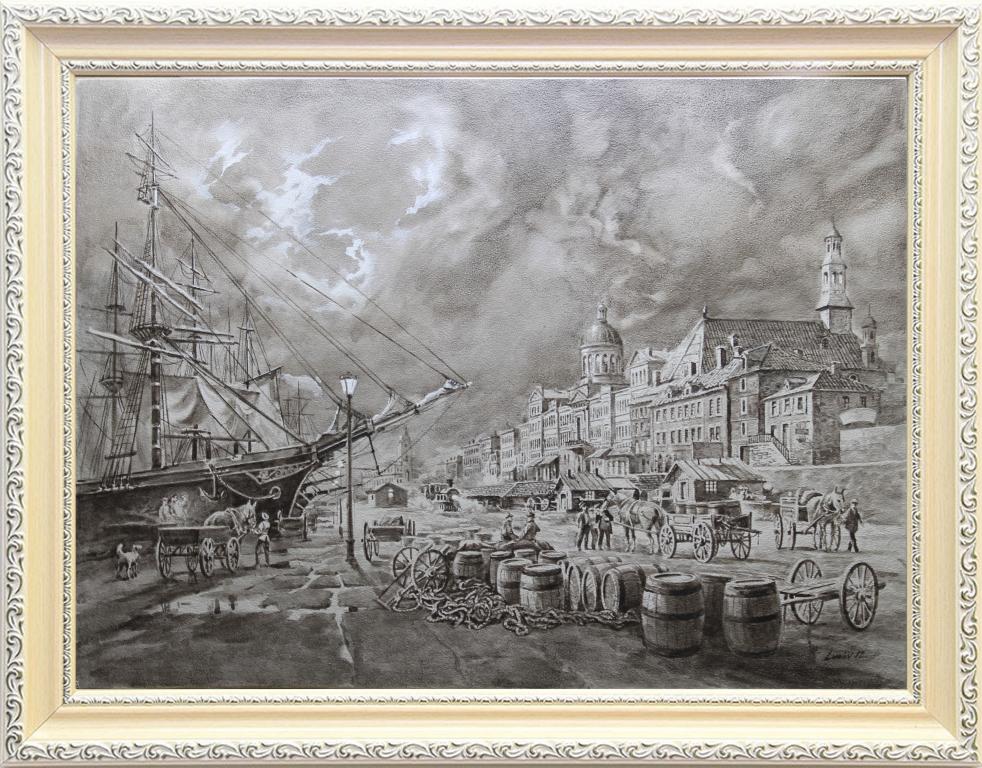 Авторская работа. Оргалит, левкас. Соус. Размер 60 х 44 см., 2012 г.