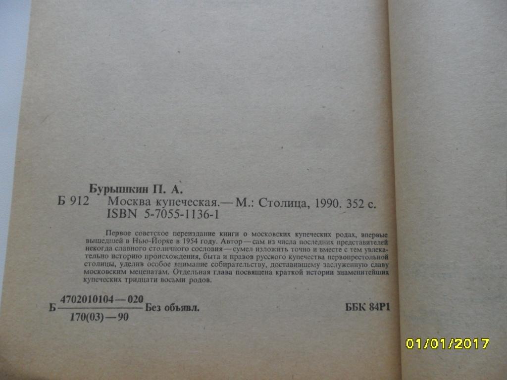 Первое советское переиздание книги о московских купеческих родах, впервые вышедшей в Нью-Йорке в 1954 году. Автор излагает историю происхождения, быта и нравов русского купечества первопрестольной. Отдельная глава посвящена краткой истории 38 купеческих родов: Морозовы, Бахрушины, Найденовы, Третьяковы, Щукины, Прохоровы, Алексеевы, Шелапутины, Куманины, Солдатенковы, Якунчиковы, Хлудовы, Мамонтовы, Боткины, Мазурины, Абрикосовы, Крестовниковы, Гучковы, Вишняковы, Рукавишниковы, Коноваловы, Рябушинские, Красильщиковы, Ушколы, Швецовы, Второвы и Тарасовы и др.