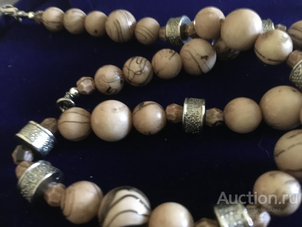 Росскошные бусы из природного камня,винтажное украшение,песочного цвета.Состояние-новых.
