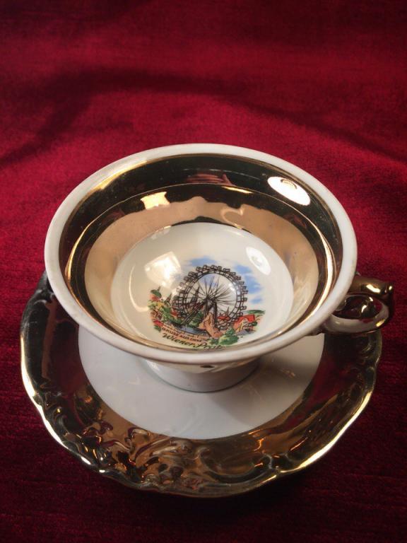 золочением, деколь, на блюдце обемный декор, клеймо Wawel Made in