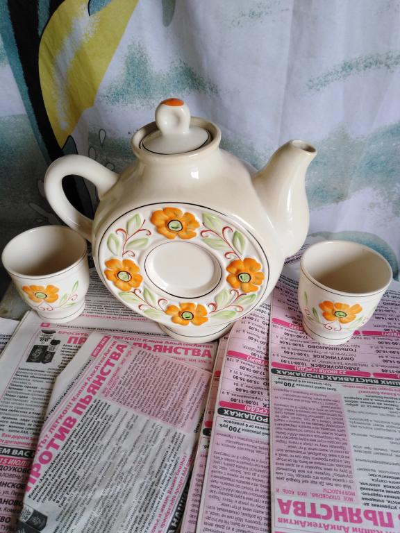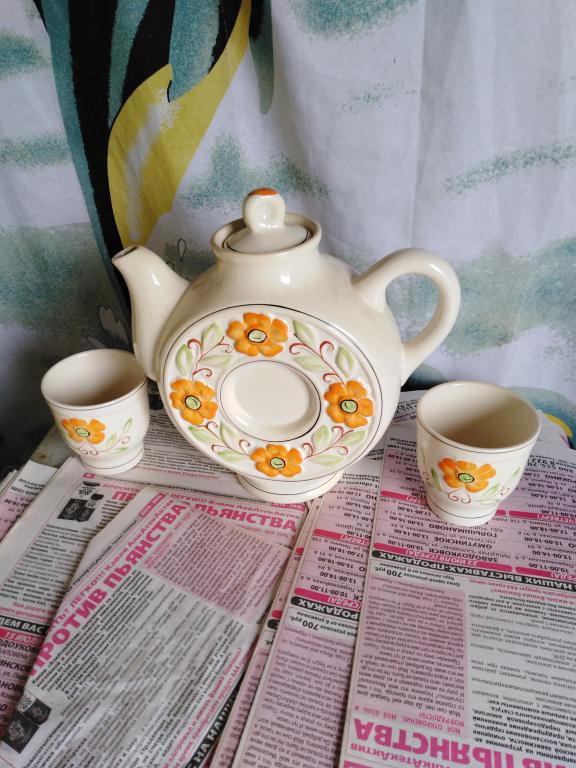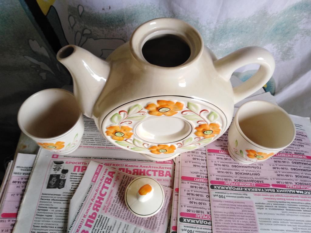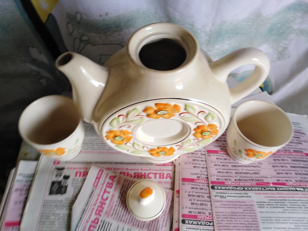 Чайник к чаю. Заварной с кружками 2 шт. Набор СССР.