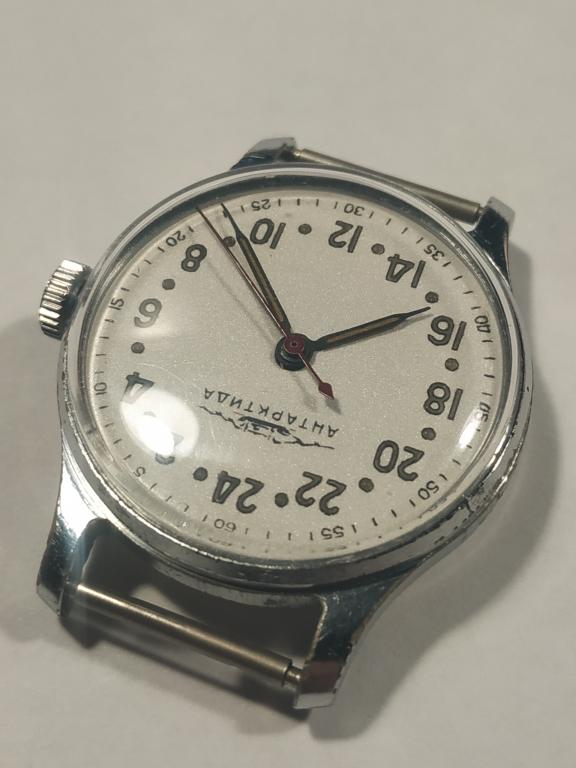 Часы имеют внешнее оформление:ЧН-189К"Антарктида 1мчз 24 часа" Сделано в СССР. Часовая стрелка полностью описывает круг за двадцать четыре часа.Корпус хромированный,задняя крышка стальная нерж.,штампованная винтовая-1МЧЗ сделано в СССР.Вся светомасса рабочая новая современная.Стекло новое.Часы обслужены мастером, на достаточно точном ходу.Готовы к эксплуатации.