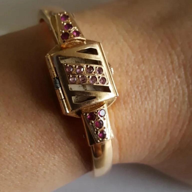золотые часы с Советских времен на ходу, 583 пробы, вставки гранат