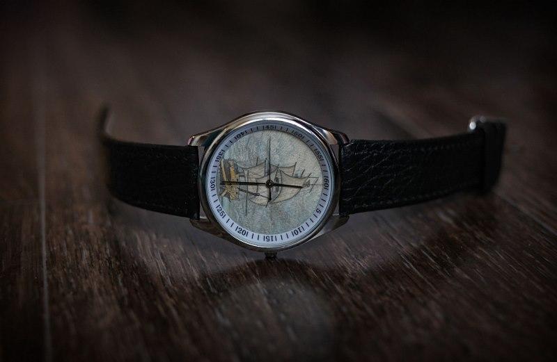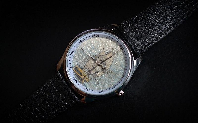 Часы: корпус "Север", механизм кварцевый "Ориент", цыферблат бивень мамонта (скримшоу)