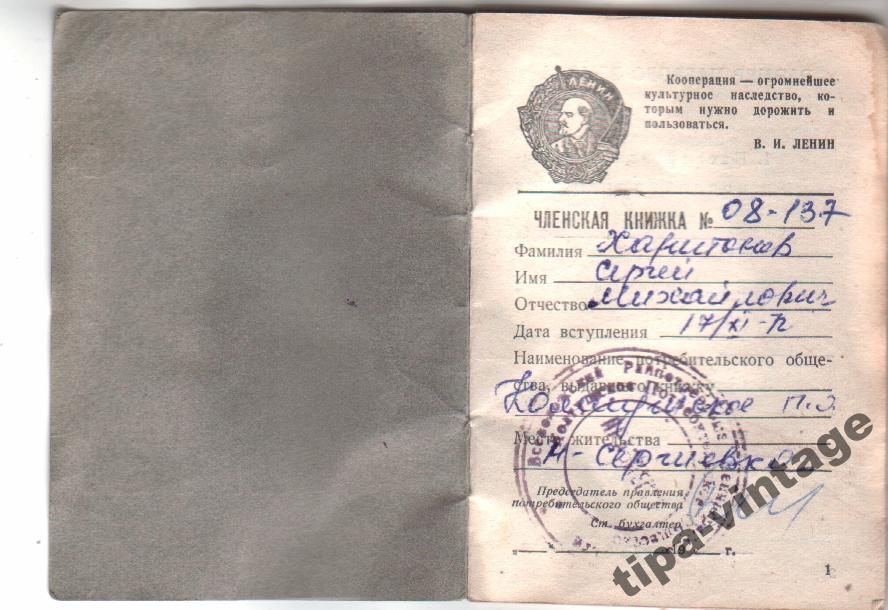 Членская книжка Потребительская кооперация