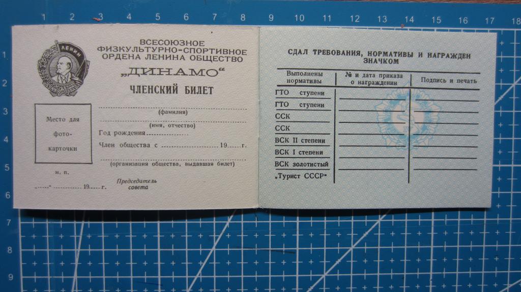 Членский билет "ДИНАМО" ЧИСТЫЙ. Много в наличии.