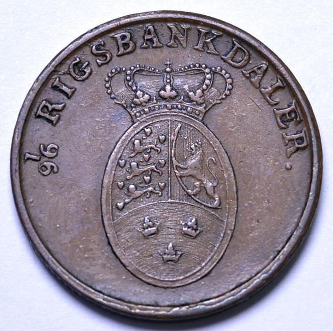 ФРЕДЕРИК VI. ТИП ОДНОГО ГОДА. ОТЧЕКАНЕНА ЧУТЬ РЖАВЫМ ШТЕМПЕЛЕМ РЕВЕРСА. БРОНЗА. СОСТОЯНИЕ: aXF