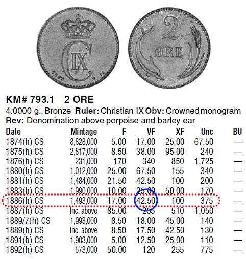 Монета Дании (Denmark) тип № КМ# 793.1 по Каталогу монет мира Krause с 1801 по 1900 годы, 7-е издание, 2012 год.