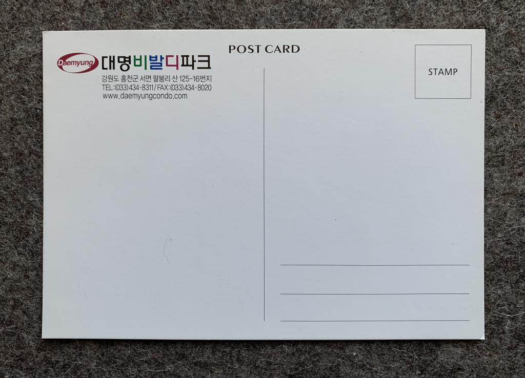 125-16, гора Палбонгри, Написано, Хончхон-гун, Канвондо ТЕЛ.: (033)434-8311 /ФАКС: (033)434-8020 www.daemyungcondo.com