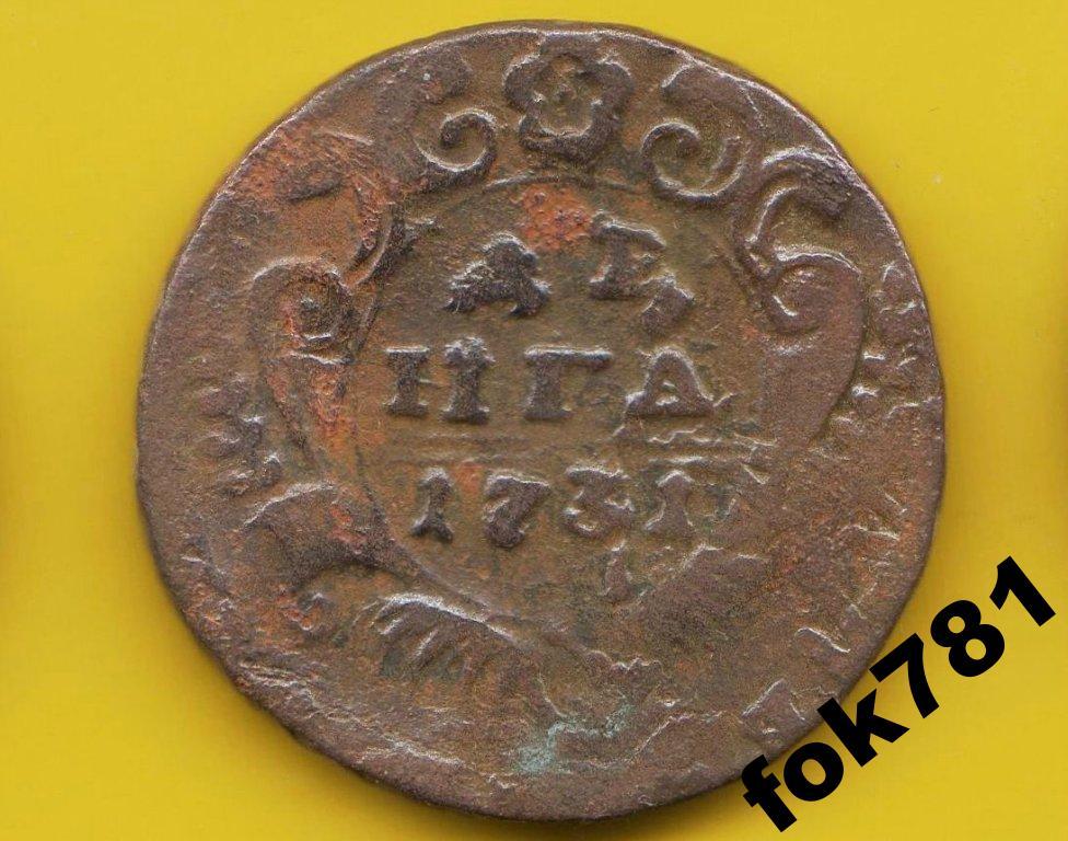 ДЕНЬГА 1731 ГОД №20 ПЕРЕЧЕКАН