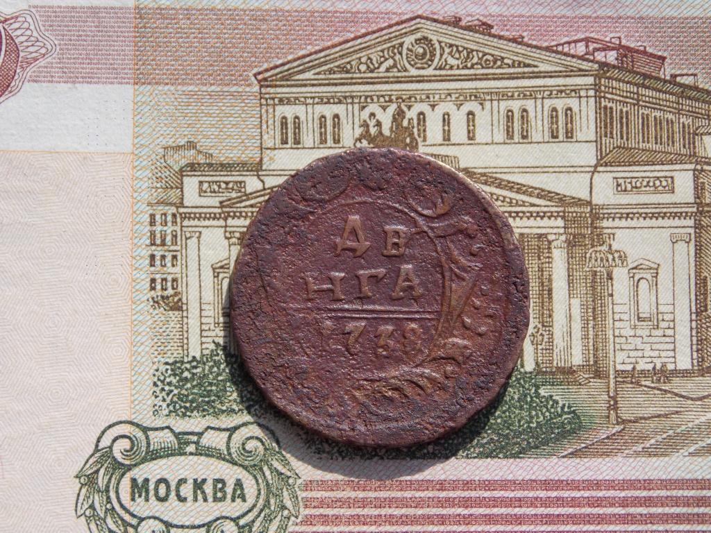 медную монету денга 1738 года правления Императрицы Анны