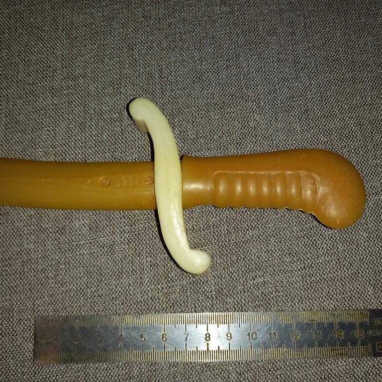 Старая пластиковпя детская игрушка "Сабля, шашка". Длина 35 см. 60 - 70-е гг.