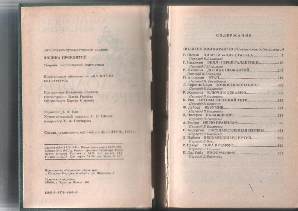 Содержание: Роберт Шекли «Цивилизация статуса»; Гарри Гаррисон «Билл - герой Галактики»; Роджер Желязны «Долина проклятий»; Пол Андерсон «Этап»; Леон Спрэг де Камп «Живое ископаемое»; Роджер Желязны «Ключи к декабрю»; Кит Рид «Автоматический тигр»; Фриц Лейбер «Безумие»; Дорис Писерчи «Наваждение»; Альфред Бестер «Не по правилам»; Пол Андерсон «Государственная измена»; Ларри Найвен «Весь миллиард путей»; Рон Гуларт «Пора в ремонт»; П.Дж. Уайл «Информация».