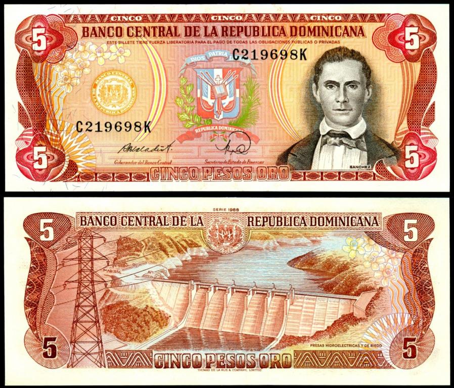 Доминикана 5 песо 1988