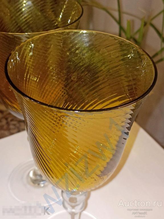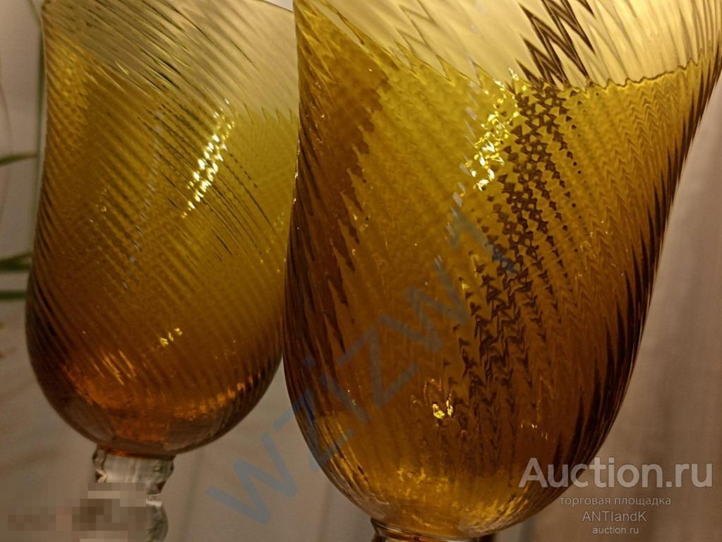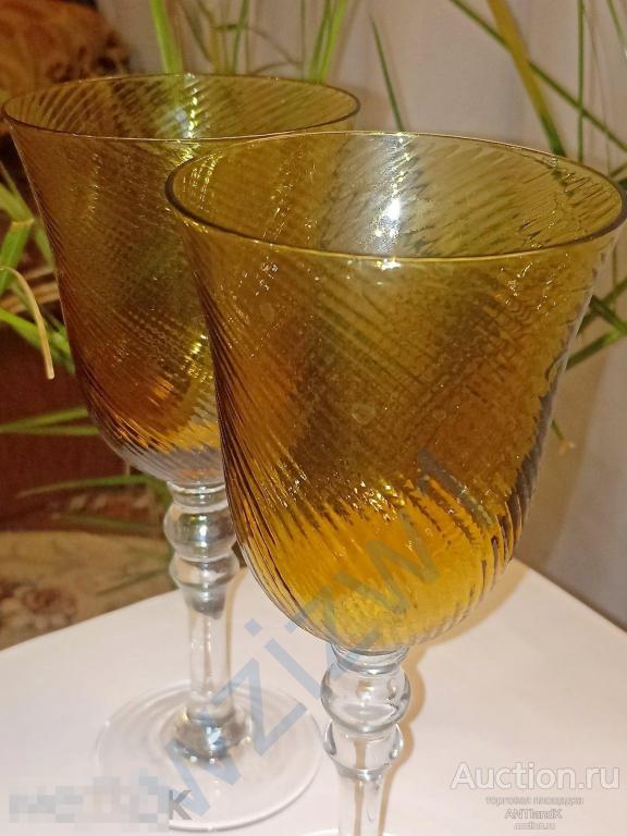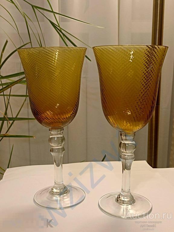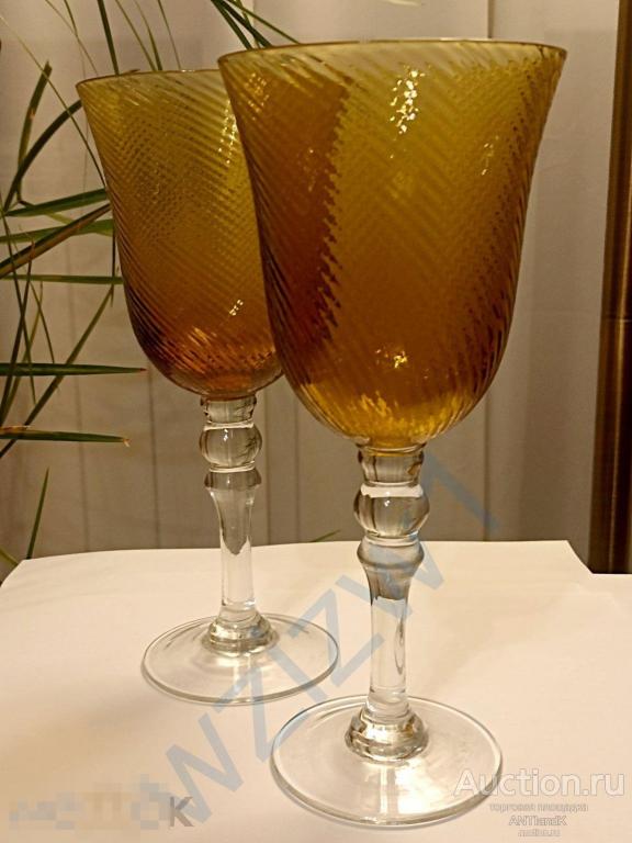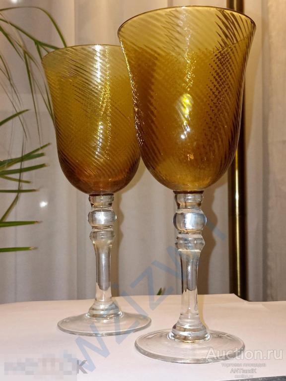 Два высоких фантастических фужера из янтарного медового стекла. высота 23 см