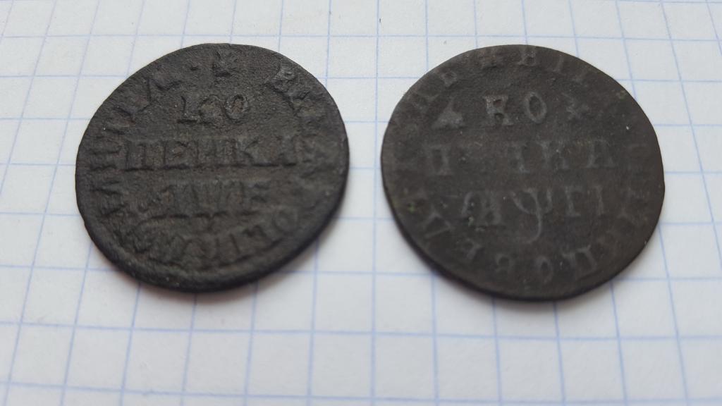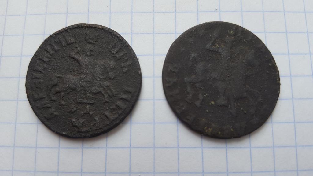Копейки 1705 и 1713. сохран на фото.