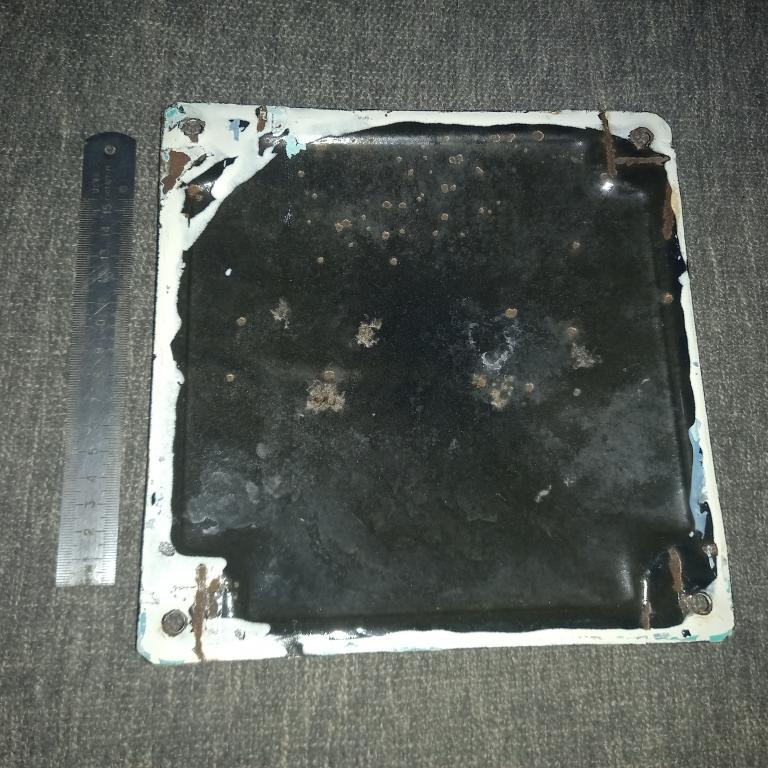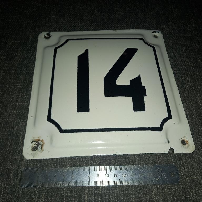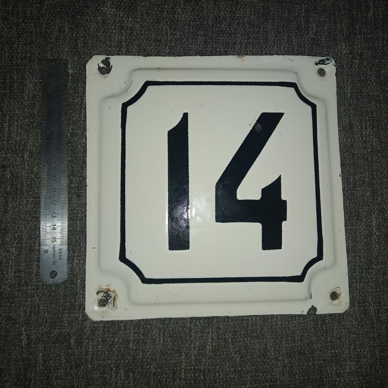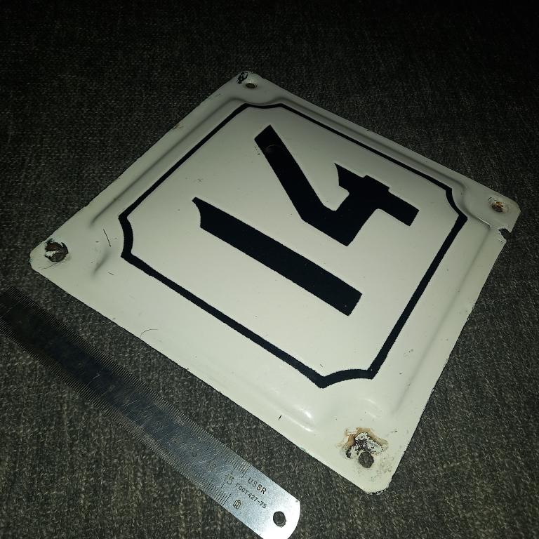 Старая эмалированная табличка, номер дома. Размер 22 × 22 см. 50 - 60-е гг.