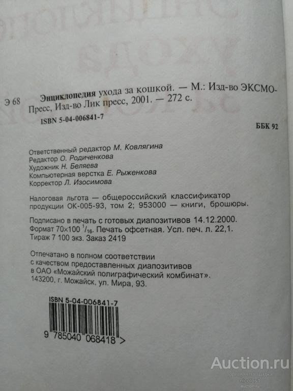 Купите "Энциклопедия ухода за кошкой" по цене 400a.Покупайте сейчас, чтобы не упустить эту отличную цену на “Auction.ru”.