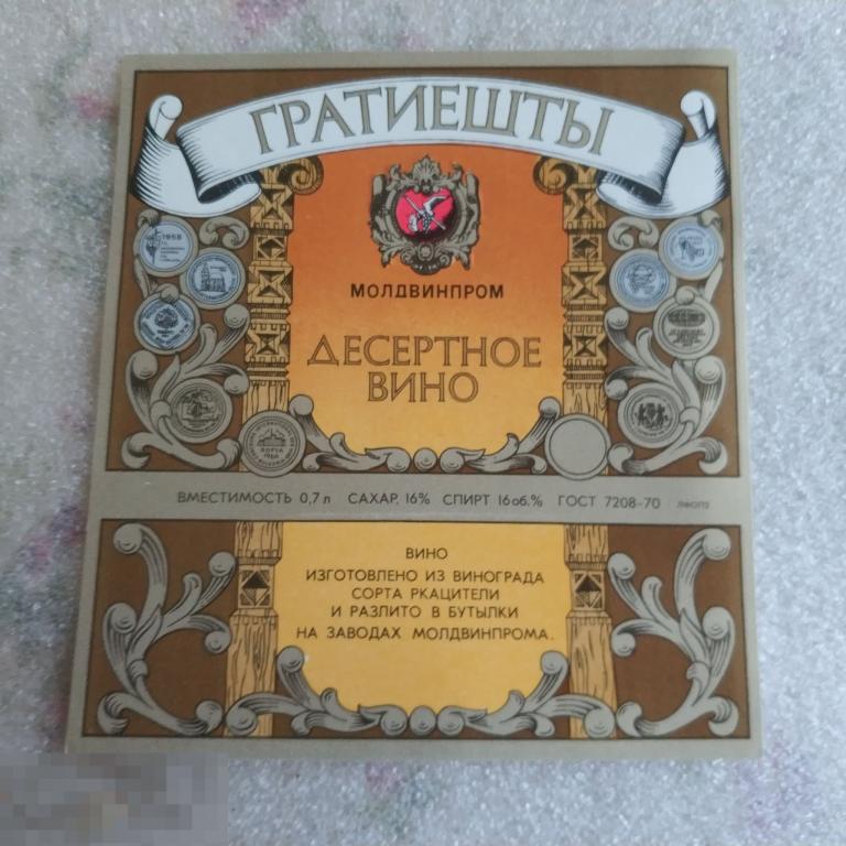 Этикетка Гратиешты. Состояние хорошее. Фото.