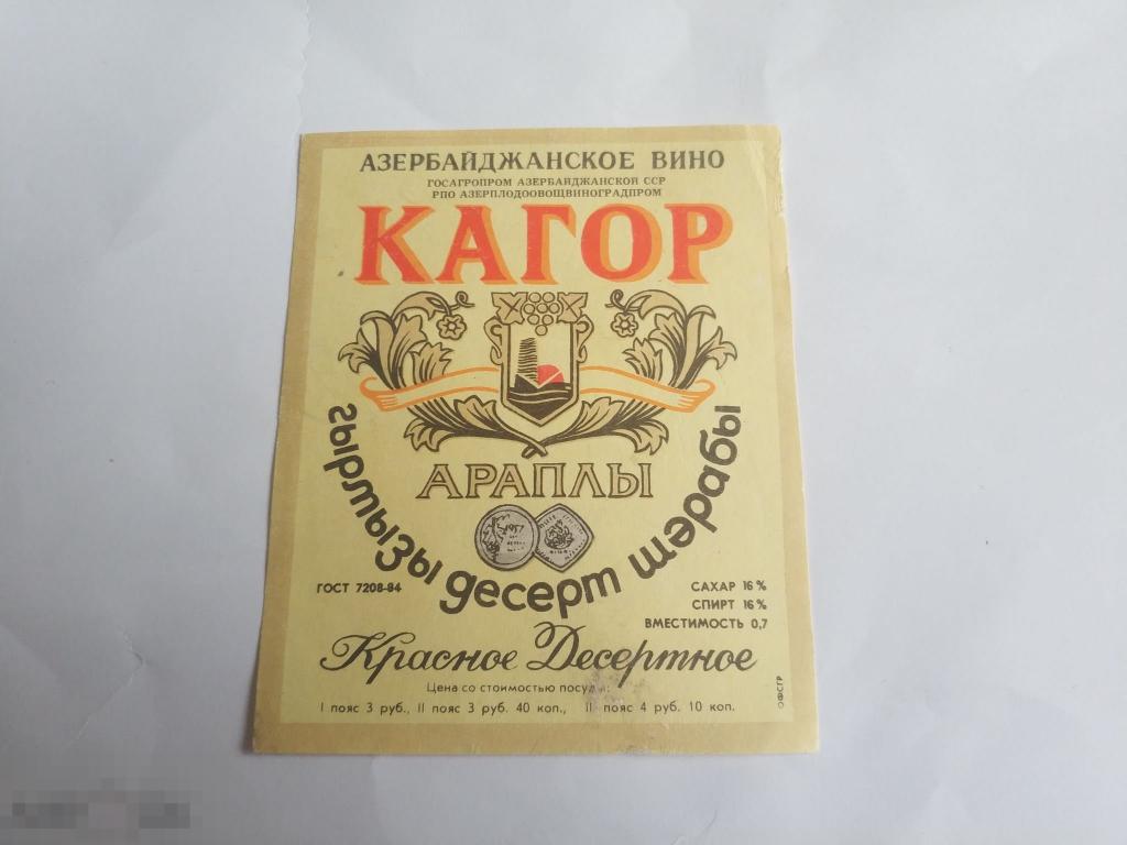 Этикетка Кагор. Состояние хорошее. Фото.