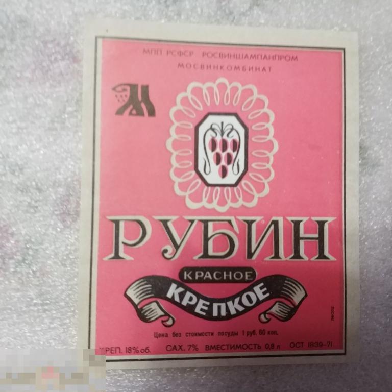 Этикетка Рубин. Состояние хорошее. Фото.