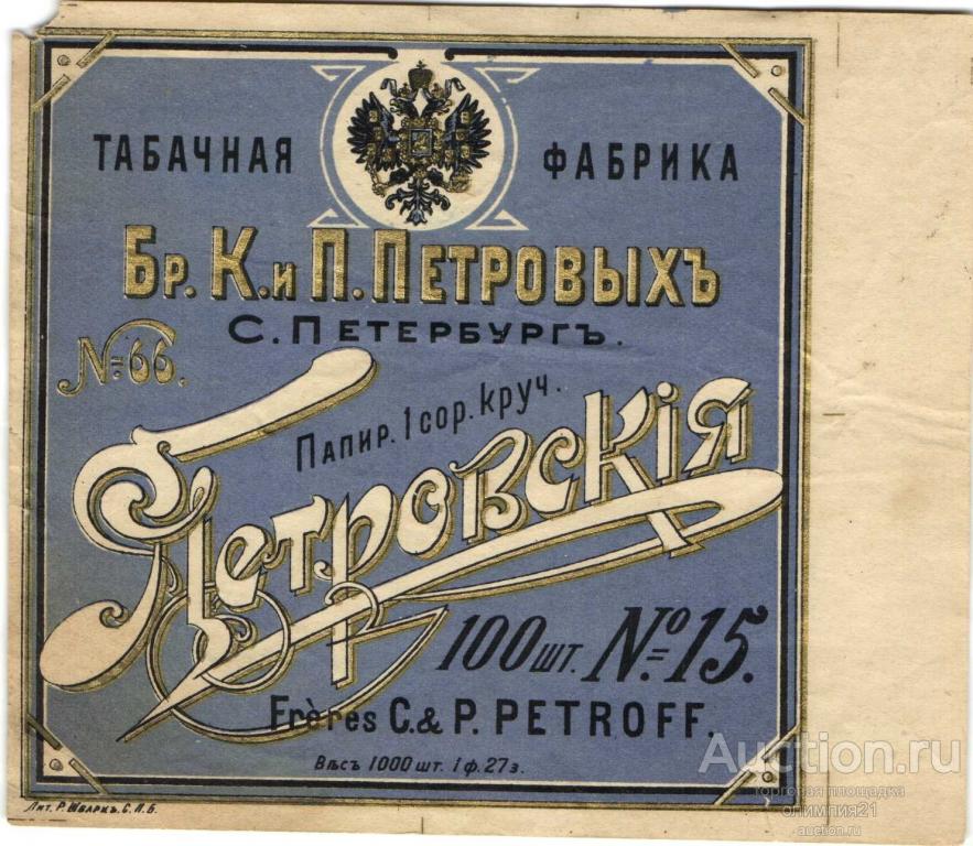 ЭТИКЕТКА ТАБАЧНАЯ ФАБРИКА ПЕТРОВЫХ