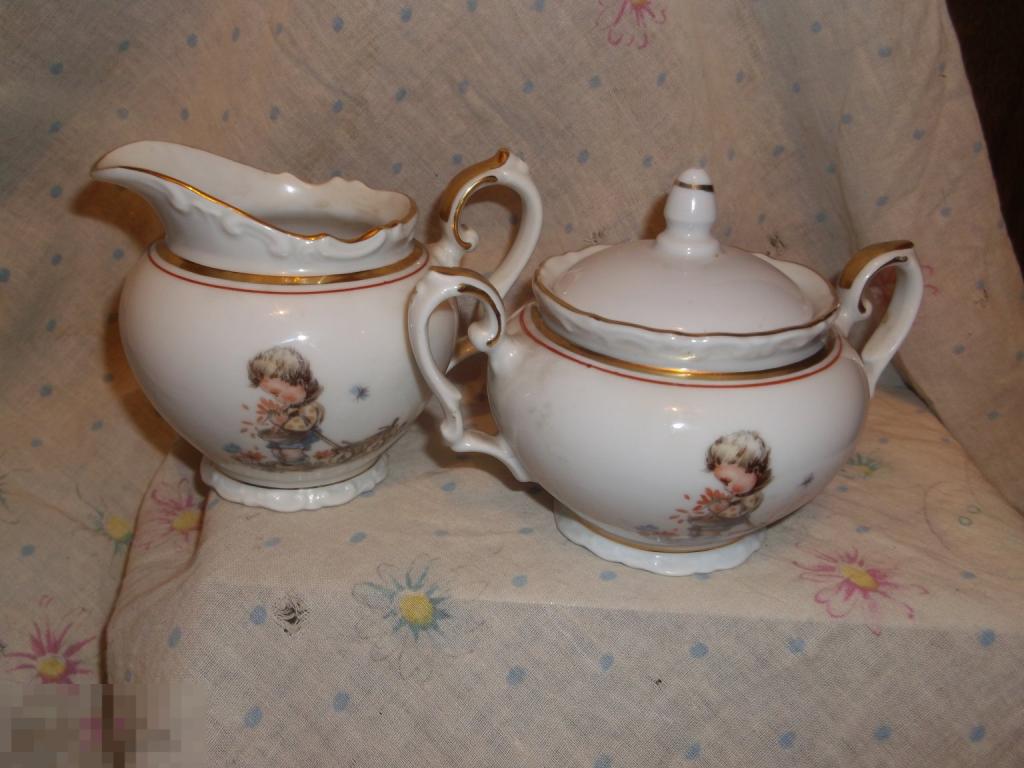 очень редкий фарфоровый сливочник с золотой каймой .Фарфор золото Германия Идеальное коллекционное состояние