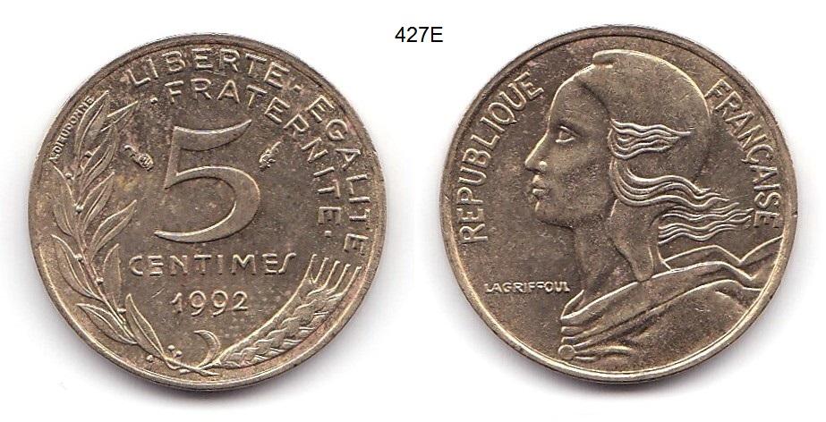 Франция. 5 сантимов. 1992 год.
