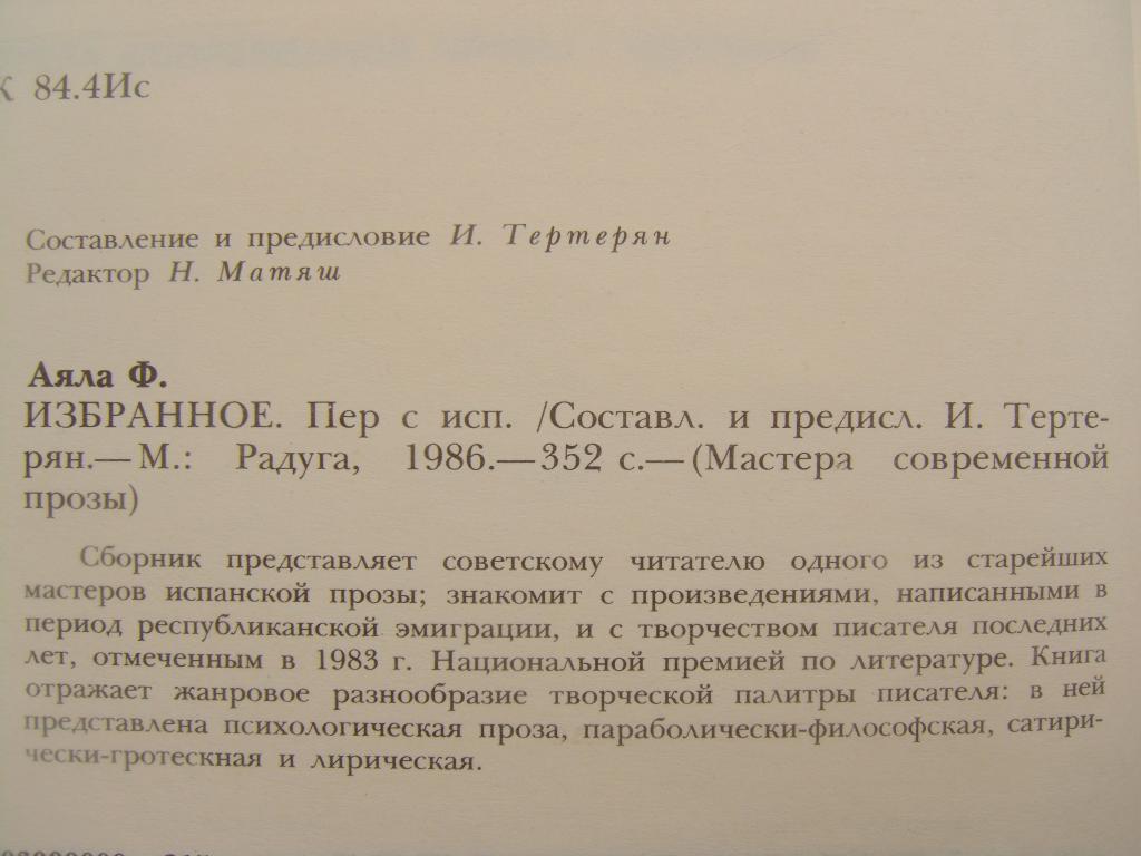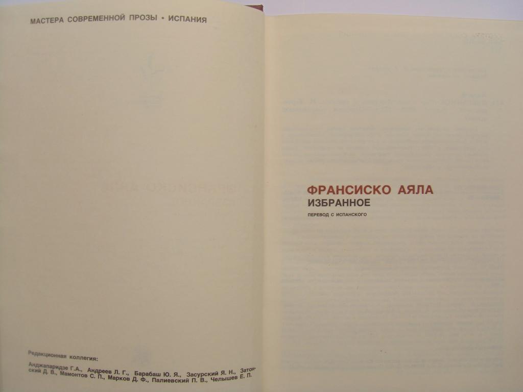 ФРАНСИСКО АЯЛА (Мастера современной прозы). М., "Радуга", 1986.