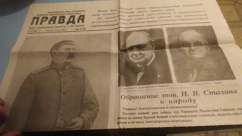 Газета в хорошем состоянии,хранилась бабушкой блокадницей,надрыв в верхнем уголке первого листа.