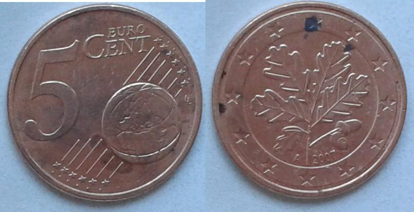 Монета Германии - 5 евроцентов, медь, 2007г. Состояние на фото.