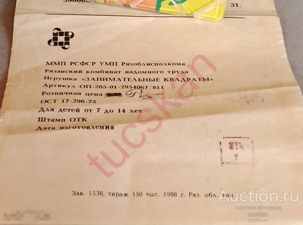 Головоломка СССР Занимательные квадраты