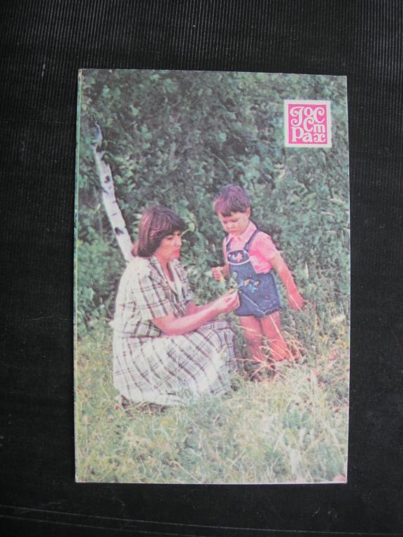 карманный календарик "Госстрах" - страхование детей (мальчик с мамой) 1987