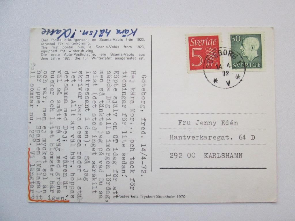 Адресовано Jenny Eden в Karlshamn.