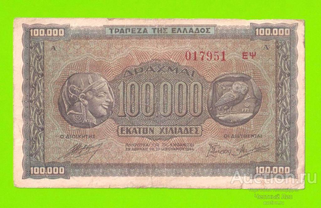 Купите "Греция - 100000 драхм - 1944" по цене 190a.Покупайте сейчас, чтобы не упустить эту отличную цену на “Auction.ru” или сделайте свое предложение продавцу.