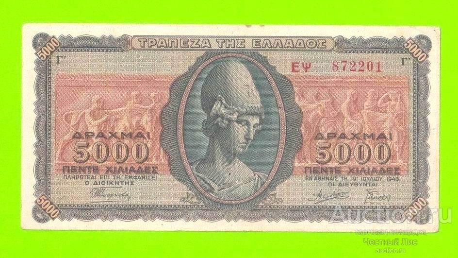 Купите "Греция - 5000 драхм - 1943" по цене 330a.Покупайте сейчас, чтобы не упустить эту отличную цену на “Auction.ru” или сделайте свое предложение продавцу.