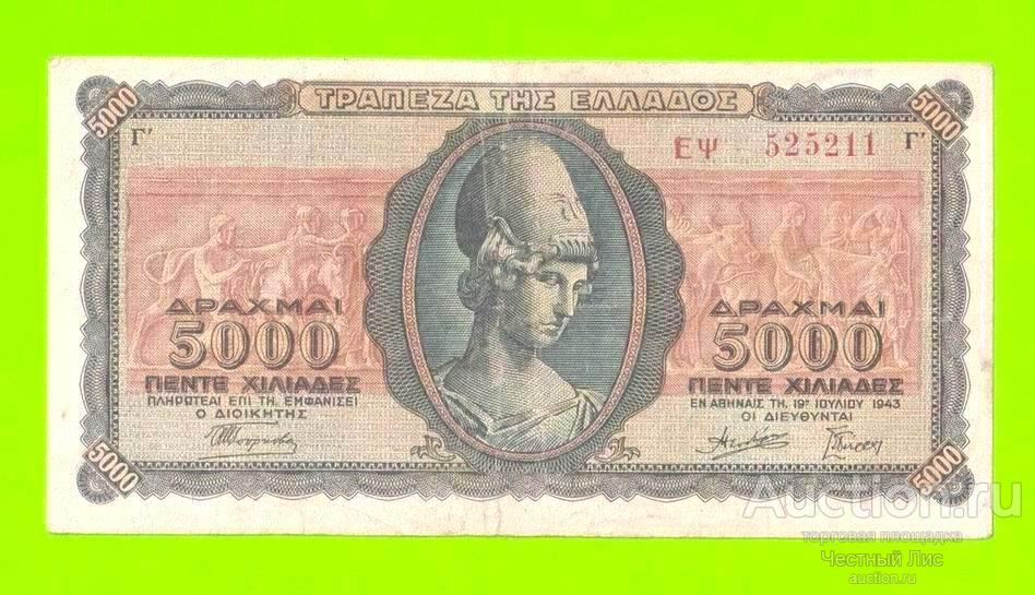 Греция - 5000 драхм - 1943 Купите "Греция - 5000 драхм - 1943" по цене 220a.