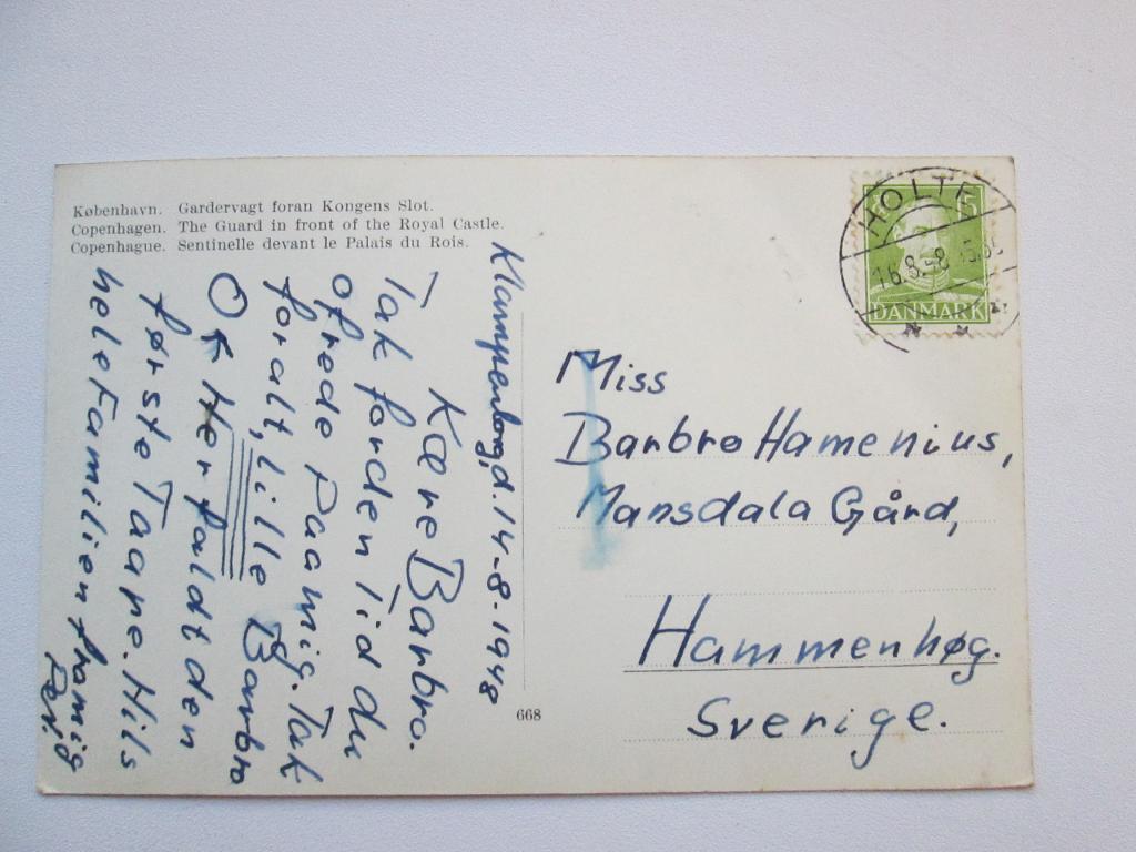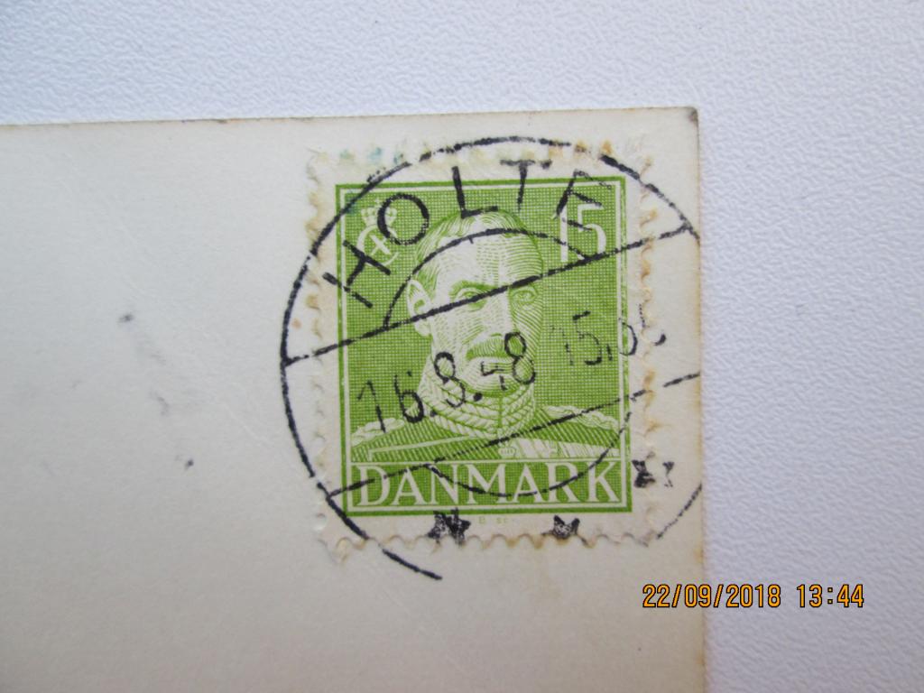 Хольте,Дания.Марка на редкой датской открытке.Дата на штемпеле 16 августа 1948 года.