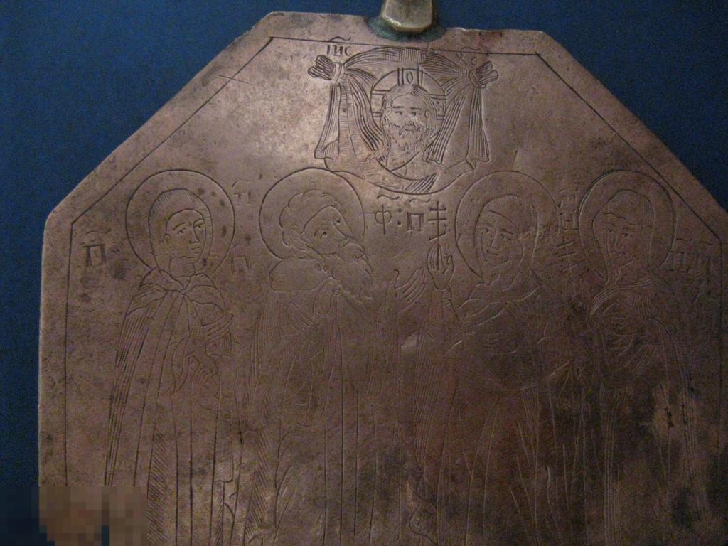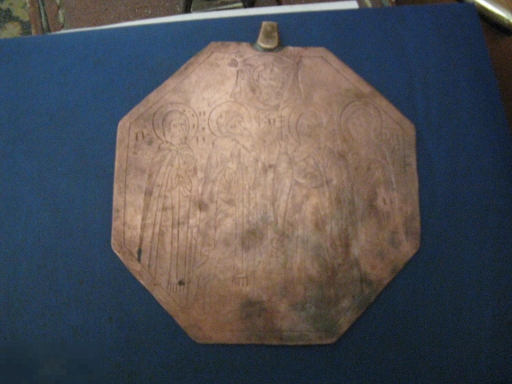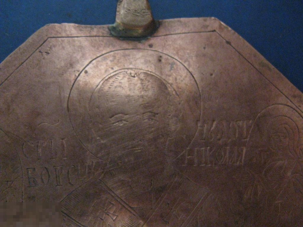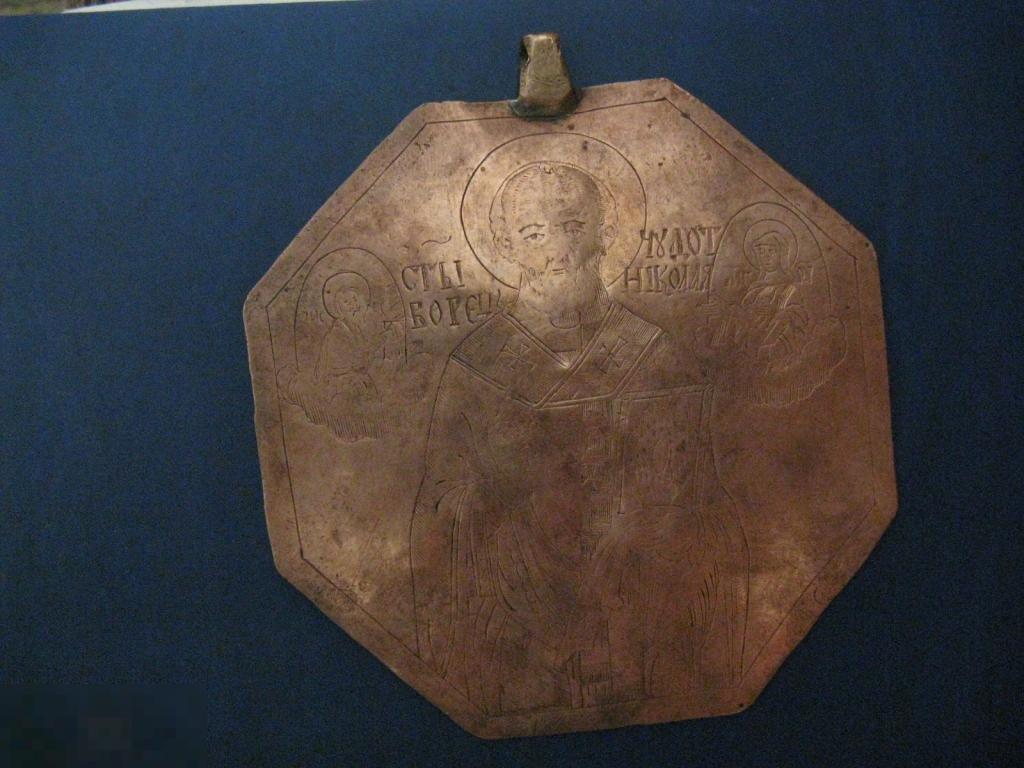 интересная нашейная икона медь штихель с одной стороны николай чудотворец с другой избранные святые восмигранник 10см происхождение из удмурской республики