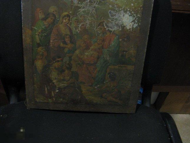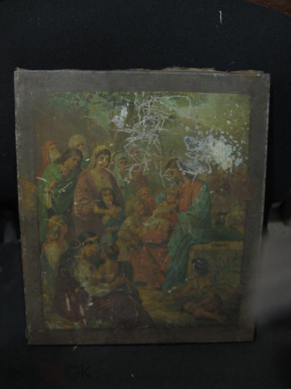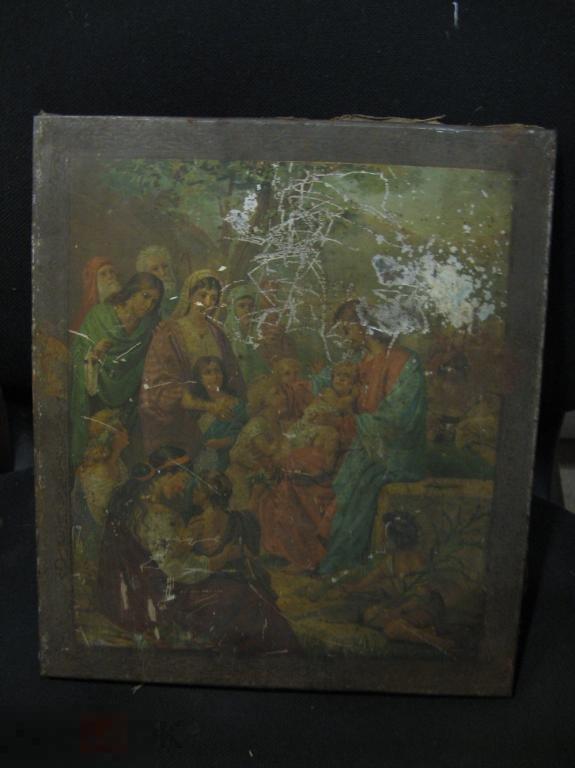 икона интересный сюжет 19век литография по металлу без реставрации высота 36 см ширина 31 см состояние на фото