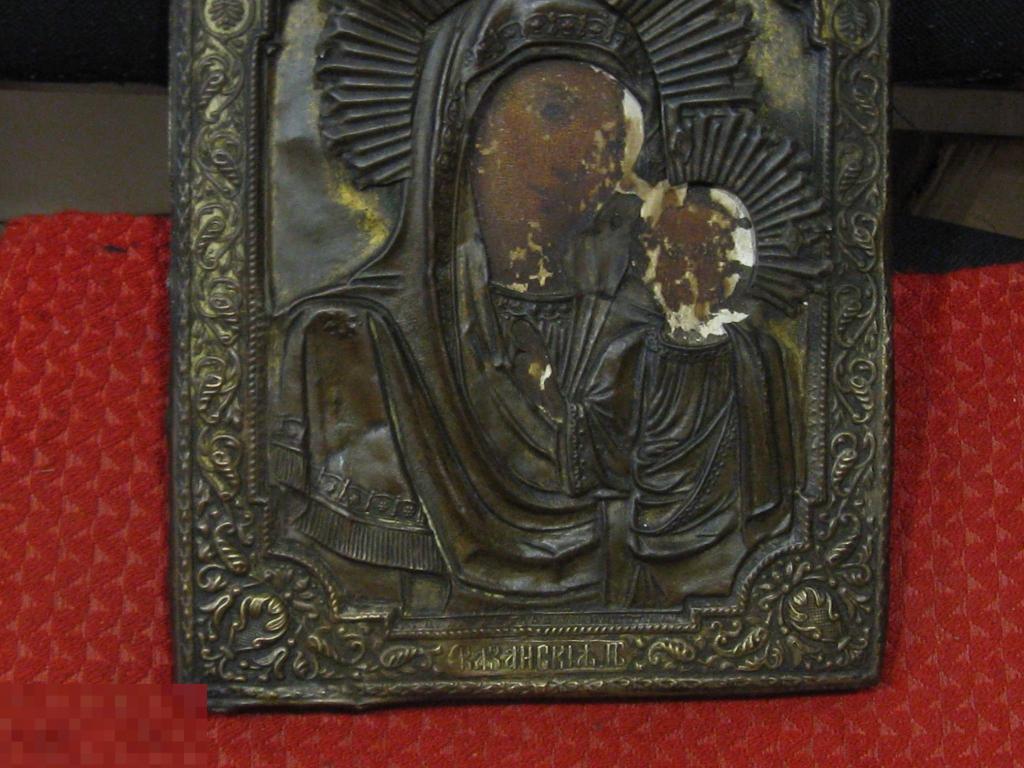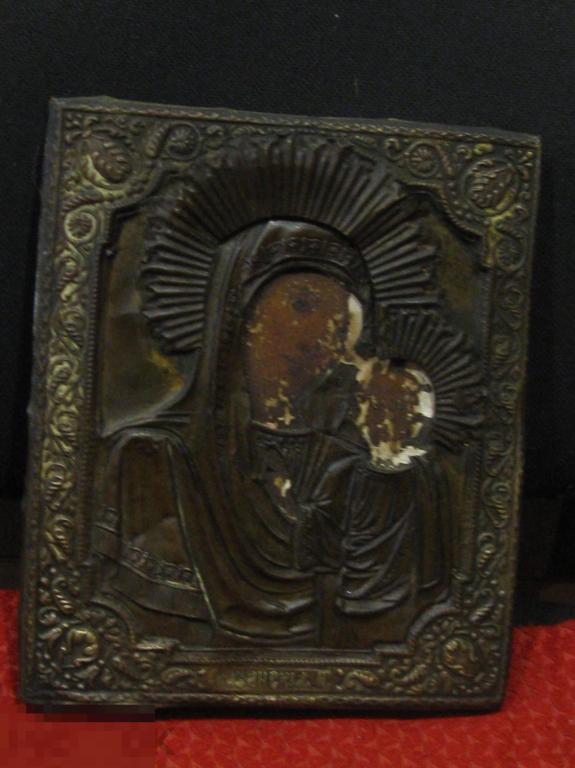икона Казанская б м высота 26 см ширина 21,5 см письмо в латунном окладе состояние на фото