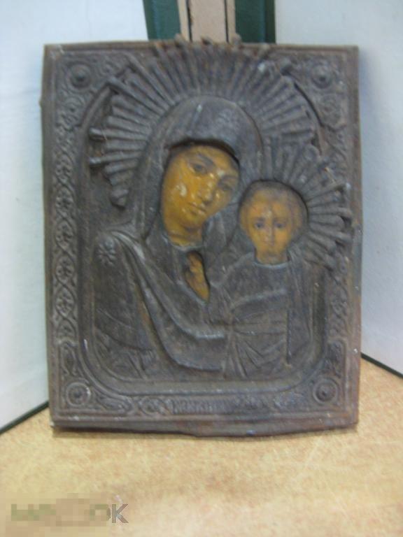 икона Казанская б м высота 18 см ширина 14 см литография в жестяном окладе состояние на фото
