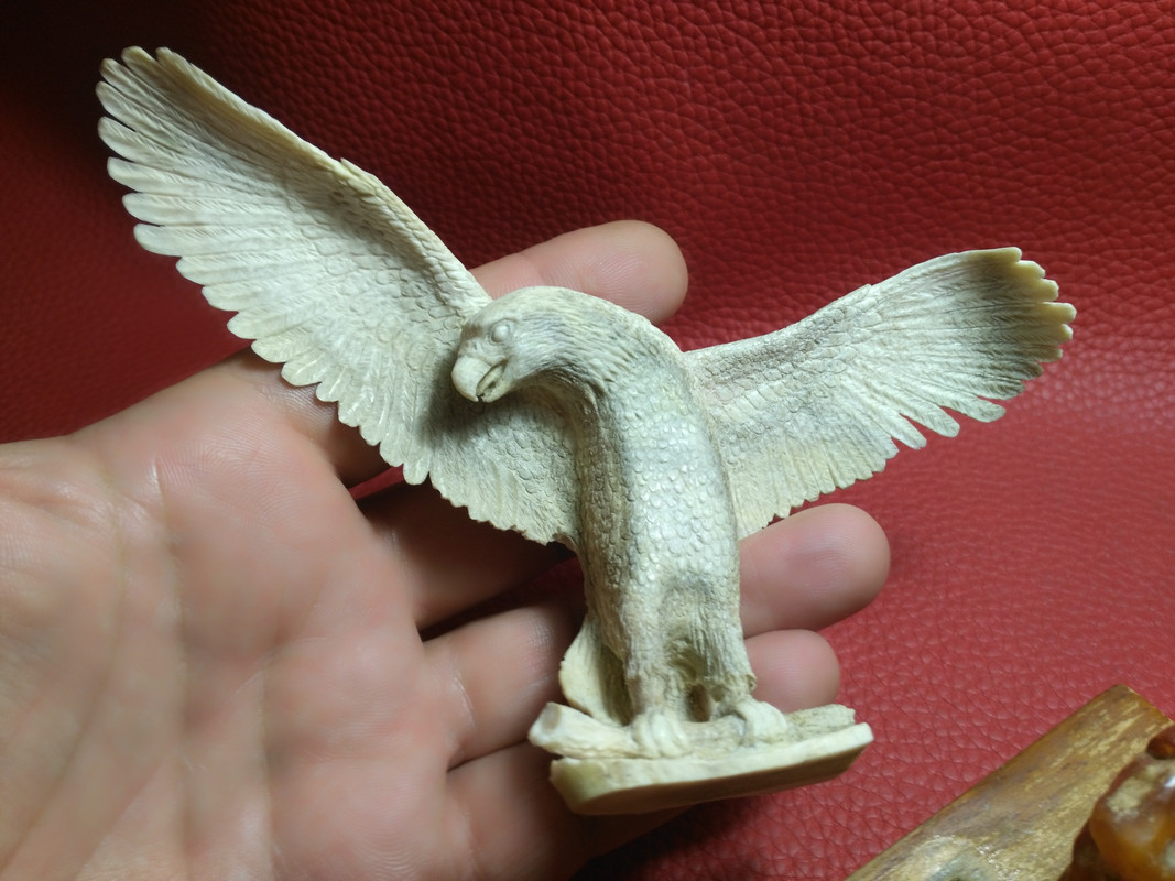 В Данном лоте --КОМПОЗИЦИЯ-- Янтарь- 50тых лет. Орёл -Кость Ювелирная тонкая резьба...